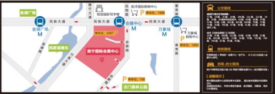 自駕車出行的朋友,請展期根據交警以及路上指示標識停入會展中心地下停車場;總之您不管采用哪種方式到南寧國際會展中心,都會非常便利。