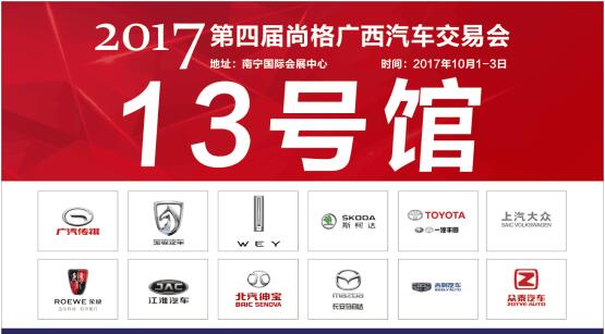 2017第四屆廣西汽車交易會(以下簡稱廣西車交會)將于10月1-3日在南寧國際會展中心盛大開幕。本屆車交會由中國-東盟博覽會秘書處、尚格會展股份有限公司主辦,南寧國際會議展覽有限責任公司、南寧尚格會展服務有限公司承辦,南寧尚格會展服務有限公司執(zhí)行承辦。