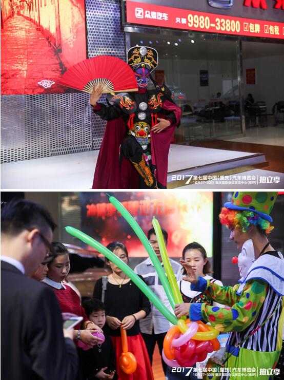 車展上除了汽車的展示,精彩紛呈的表演也是一大亮點(diǎn),火辣性感的熱舞、優(yōu)雅輕柔的車頂芭蕾舞、端莊大氣的車模走秀、神奇的藝術(shù)變臉等表演輪番上演,吸引眾多觀眾駐足圍觀。各展臺除了精彩的演繹外,還精心準(zhǔn)備了生動有趣的互動活動,小丑花樣編織氣球、動感單車發(fā)電贏好禮、手機(jī)搖一搖搶福利、趣味問答得大獎等,現(xiàn)場氛圍火爆至極。