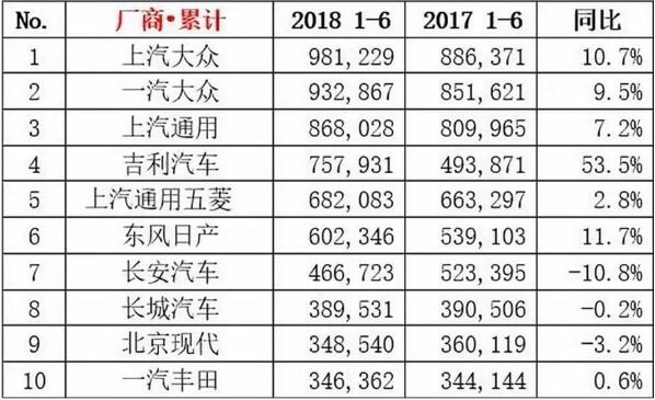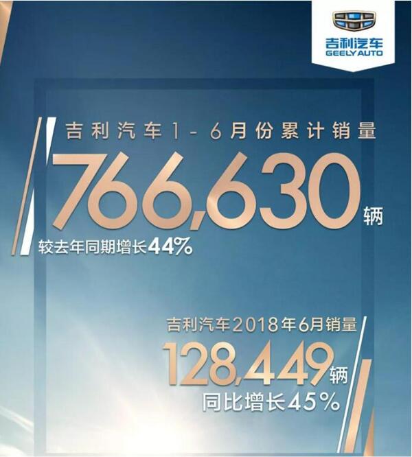 然而令人驚訝的是,在如此嚴峻的大環(huán)境之下,吉利汽車的銷量卻創(chuàng)造了全面爆發(fā)的高增長模式,僅今年上半年,吉利的銷量就達到76.66萬輛,同比增長44%,而且已經(jīng)完成了全年158萬輛銷量目標的49%。上半年,無論是增速還是整體銷量,吉利汽車都穩(wěn)居中國品牌銷量排行榜第一名。