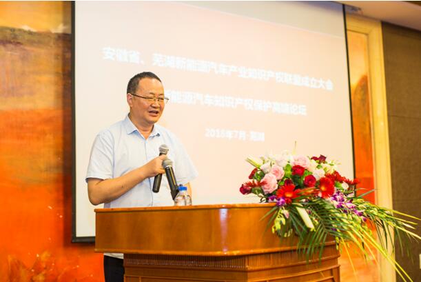 大會現場,安徽省知識產權局孫偉處長首先宣讀了《關于安徽省新能源汽車產業知識產權聯盟成立的批復》,聯盟成員舉手表決聯盟章程,隨后由楊少華局長、李國柱書記共同開啟聯盟揭牌儀式。儀式后,奇瑞新能源總經理、蕪湖新能源汽車協會會長高立新做出重要講話。安徽省新能源汽車產業知識產權聯盟成立,將推進聯盟內企業專利創造,管理、運用、保護和服務能力提升,增強企業的核心競爭力和產業控制力,為蕪湖市乃至安徽省新能源汽車產業發展壯大做出貢獻。