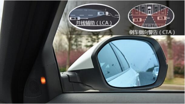 LCA并線輔助及CTA倒車側(cè)向警告,通過雷達傳感器感知側(cè)向進入監(jiān)測范圍內(nèi)的運動物體,并通過聲光信號向駕駛員發(fā)出危險提示。右側(cè)盲點可視,則通過車身右側(cè)后視鏡下的攝像頭,將駕駛員在停車和從車位起步時最難以看清楚的右側(cè)視野盲區(qū)圖像投射至中控屏,確保安全無死角。