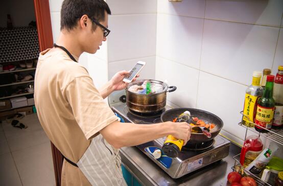 當本編還興致盎然地研究他家冰箱,夏林已經鉆進廚房開始做飯了。只見他一手拿鏟一手拿手機,咦,不對,為什么拿手機啊,啊喂!你不說你要露一手嗎,對著菜譜炒菜是什么操作??