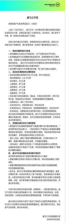 在今天公開課上,我也就這個問題咨詢了威馬成都研究院的向總,得到的答復是與27日公告的一致的。