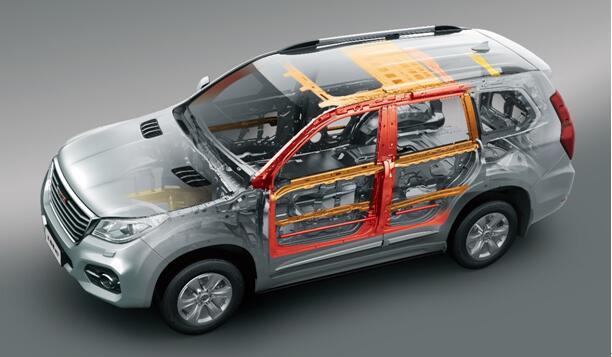 哈弗H9不僅在主動安全方面配置豐富,在被動安全方面也做足了工作。H9采用了高剛度和高效沖擊能量吸收車身架構設計,在達到C-NCAP五星設計水平之余,更為車內乘員降低了因碰撞帶來的可能傷害,打造了一處無憂安全座艙。首先,車架縱梁從前段至中段斷面逐步增大,以滿足碰撞力的傳遞需求;其次,車架縱梁在出現彎曲結構的過渡段內外板上還增加了補強板,在空腔中增加“馬蹄型”支撐板,最大限度地提高過渡段的抗彎能力。位于發動機艙前部的變形區域承擔著碰撞過程中充分變形以吸收碰撞能量的重任,從而保證乘員安全。