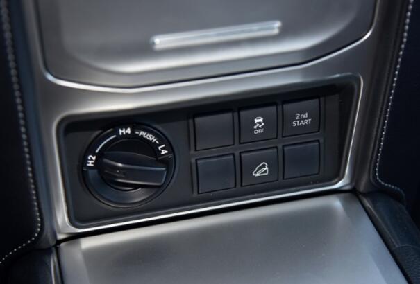 2018款普拉多為分時四驅,可以通過中控臺上的按鈕進行切換,以適應不同路況。最低配和次低配車型沒有控制儀表盤中央屏幕的多功能按鍵,最低配前排空調是手動的。