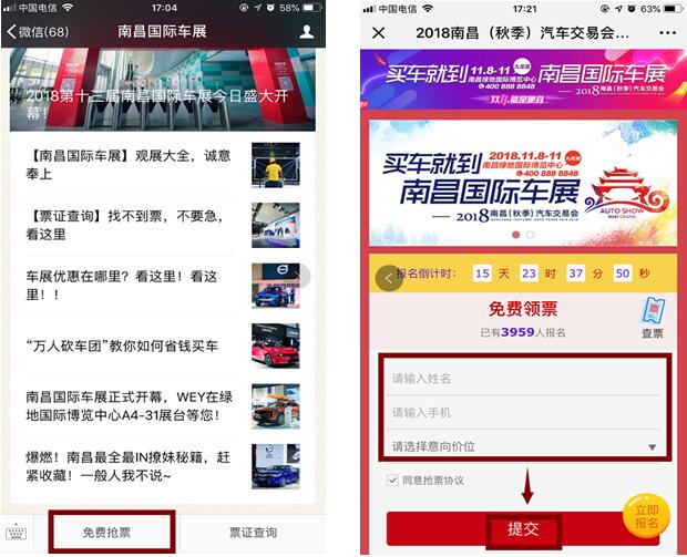廣受粉絲歡迎的“免費搶票”再度襲來,車展官方微信平臺【南昌國際車展】推出全新“免費搶票”。報名更方便,查詢更便捷,打造獨具移動互聯(lián)網(wǎng)特色車展。
