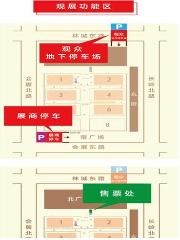 觀眾車停放:會展中心地下停車場,約3000個車位,林城東路、會展北路均有停車場出入口標標識牌,觀眾可從林城東路停車場入口進入地下停車場。