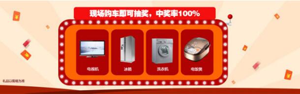 現(xiàn)場購車的觀眾,可憑購車合同、付款憑證以及個人身份證,即可參與購車抽獎,“超薄電視機”、“品牌冰箱”、“洗衣機”等多重豪禮等你來拿!獎品豐厚,中獎率為100%!