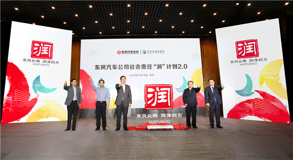 2012年,東風公司率先發布了汽車行業首個社會責任行動計劃--“潤”計劃,作為企業社會責任的行動綱領。2016年,東風公司優化完善社會責任品牌頂層設計,發布了東風社會責任“潤”計劃2.0,系統地闡明了公司在“十三五”期間社會責任工作的戰略愿景、目標、路徑和實踐體系。