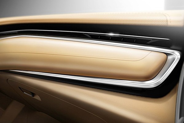 外觀方面,新車整體保留了Vision-E Concept概念車的設計元素,在細節方面,其采用了大尺寸盾型的前格柵,內部則由多條橫向銀色鍍鉻飾條組成,并與左右兩側狹長的大燈組相連接,從而構成了一體式T字形。同時,其保險杠左右兩側“L”型霧燈造型,也使整車看上去十分大氣、時尚。