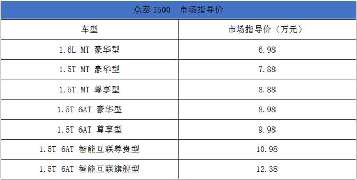 售6.98-12.38萬元 眾泰T500新時(shí)代智能SUV正式上市