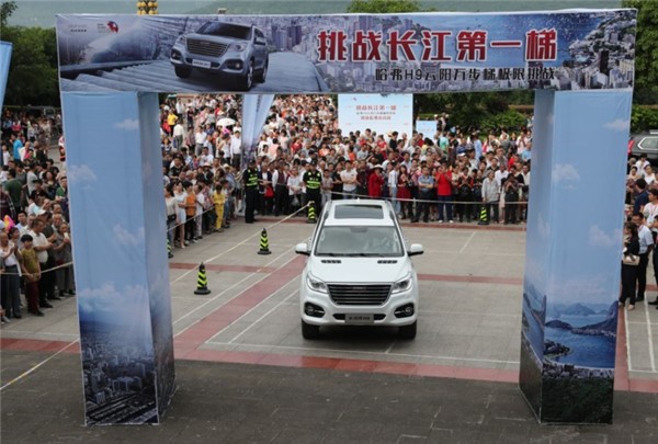 前不久,哈弗H9挑戰了萬里長江第一梯——云陽萬步梯,這條登云梯梯道全長1450米,1975級階梯構成了高達200余米的垂直落差,全程不等長、不等高的階梯以及40%-60%的不同坡度。挑戰成功后,哈弗H9的“硬派”形象更深入人心了。