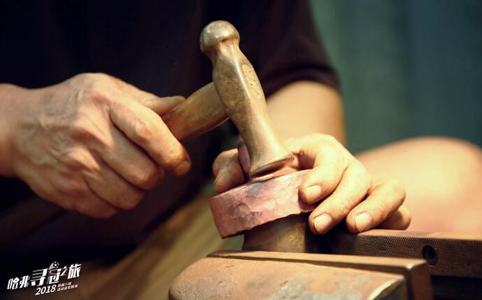 在廣州西關,打銅技藝自春秋時代誕生,在清末民國初期達到鼎盛。用一塊銅板或銅塊,靠傳統純手工打制而成無焊接無拋光的西關銅器,曾是海上絲綢之路的傲人之作。小到需要千錘百煉的一根湯勺,大到需要一個成熟工匠一年時間、超過10萬次錘打而成的梅瓶,不僅見證著伍國強家族三代的百年技藝傳承,也見證著廣州傳統人文中鍥而不舍匠心專注的千年精神傳承。