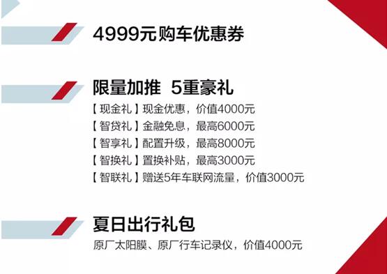 首先,吉利汽車為用戶提供了價值4999元的購車優惠券。其次,推出5重豪禮:現金禮,提供價值4000元的現金優惠;智貸禮,提供金融免息政策,最高免息6000元;智享禮,配置升級,為用戶提供最高價值8000元的智能配置;智換禮,為老用戶提供3000元的置換補貼;智聯禮,贈送價值3000元的5年車聯網流量。最后,為用戶提供夏日出行禮包,贈送價值4000元的原廠太陽膜、原廠行車記錄儀。多重優惠力度之下,吉利博越運動版的潛在用戶無疑會更加心動。