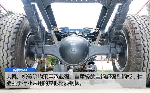 當然,汽車的油耗表現對于大部分消費者來說,始終是不可忽視的重要一環。這款新乘龍M3首先整車采用了輕量化設計,大梁、板簧等均采用承載強、自重輕的寶鋼超強型鋼板,性能強于行業采用的其他材質鋼板;同時,采用輕量化板簧、輕量化鑄件,國內首創無連接板式橫梁,整車自重同比行業輕200公斤,以及采用的低滾阻輪胎,搭配合適的動力匹配,使新乘龍M3的燃油經濟性提高10%。
