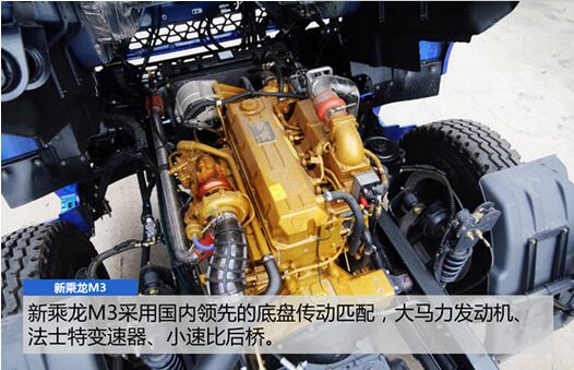 在配置方面,這款新乘龍M3采用國內領先的底盤傳動匹配,大馬力發動機、法士特變速器、小速比后橋。其中發動機方面,可選裝玉柴和康明斯的多款四缸或者六缸發動機,動力涵蓋了180-270的馬力段,發動機在處于1300-1600rpm經濟轉速時,車速能達到75-91km/h,經濟時速提升10%,可以說,新乘龍M3的配置達到了同級別產品中的最高水平。此外,新乘龍M3的發動機還采用前移布置,貨箱能做得更長,4x2車型的貨箱最長能做到9米8。在維護方面,新乘龍M3總成全部實施30000公里更換潤滑油,每年可為用戶節約成本3000元。