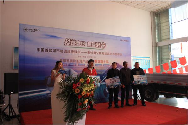 【福田輕型商用車事業本部奧鈴濟南市場部經理林夕軍與濟南富邦汽車銷售有限公司總經理徐延岐為奧鈴CTS超級輕卡揭幕】