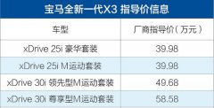寶馬全新一代X3售價公布 售39.98-58.58萬/競爭力大